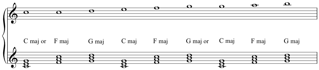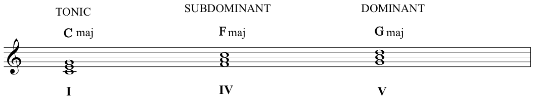 Cmajis the tonic triad,Fmajis the subdominant triad, andGmajis the dominant triad respectively![Tonic, subdominant, and dominant triads for C major scale]()