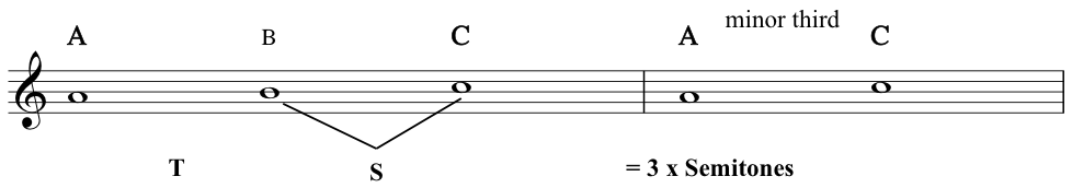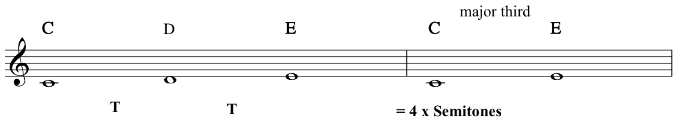 Tone: the distance of a second that has a black key in the middleSemitone: the distance of a second that does not have a black key in the middle- There are only two sets of semitones: between