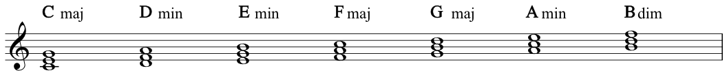 diminished chordCmaj,Fmaj, andGmajDmin,Emin, andAminBdim(diminished, as having an imperfect fifth)![natural triads]()
