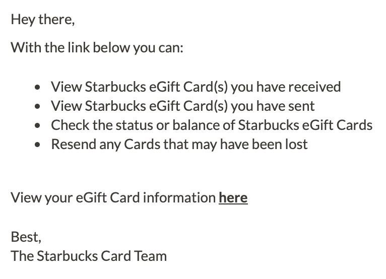 I can resend eGift cards from Starbucks’ webpage