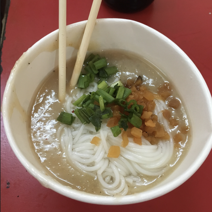 我最喜欢的早点之一(排行榜首的)是糊汤粉。第一个字是去声(hù),表示汤汁是粘稠的半流体。糊汤粉我给打五颗星!