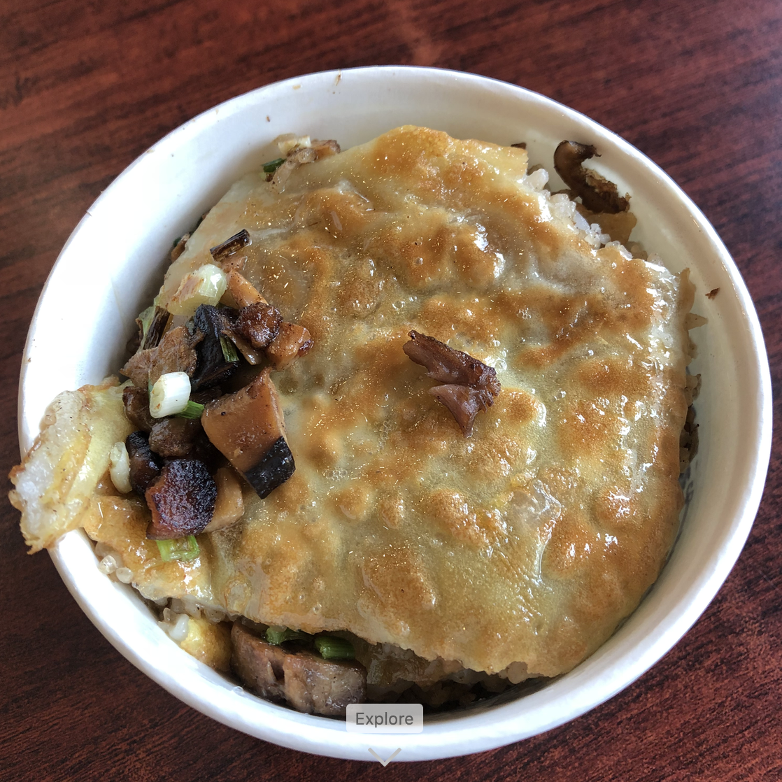 刚出炉的豆皮,外壳酥脆热气腾腾蛋香四溢,咬下去先是软糯可口,然后触及三样浑然不同的卤菜,肉香,笋脆,菇清爽。不知不觉中,一份豆皮就消失得无影无踪,可谓是「豆皮千块在腹中」。